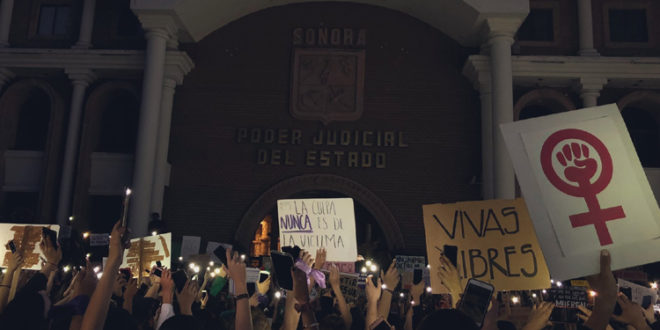 Kadınlar Sonora eyaletindeki Anayasa Mahkemesi önünde toplandı.