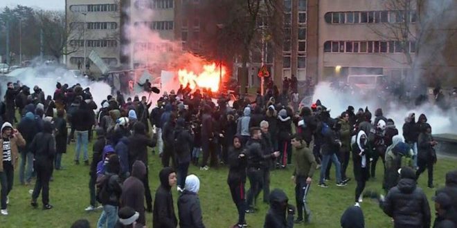 İlkin dün akşam üstü Paris banliyölerinden Villeneuve-la-Garenne’de toplanan eylemciler, yollara çöp kutularıyla kurdukları barikatları tutuşturdular. Bölgeye gelen polis eylemcilere plastik mermiler ve göz yaşartıcı gaz bombalarıyla saldırdı. Eylemciler ise polis saldırısına havai fişekler ve taşlarla karşılık verdiler. Banliyönün farklı bölgelerinde saatlerce süren çatışmanın ardından kitle geri çekildi.
