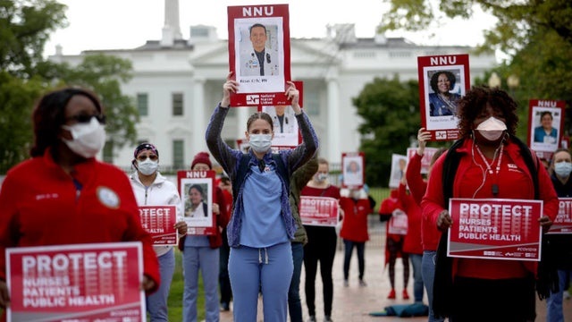 ABD’deki hemşireler, yeni tip koronavirüs (Kovid-19) için gerekli olan kişisel koruyucu ekipman eksikliğini dün (21 Nisan) Beyaz Saray önünde protesto etti.
