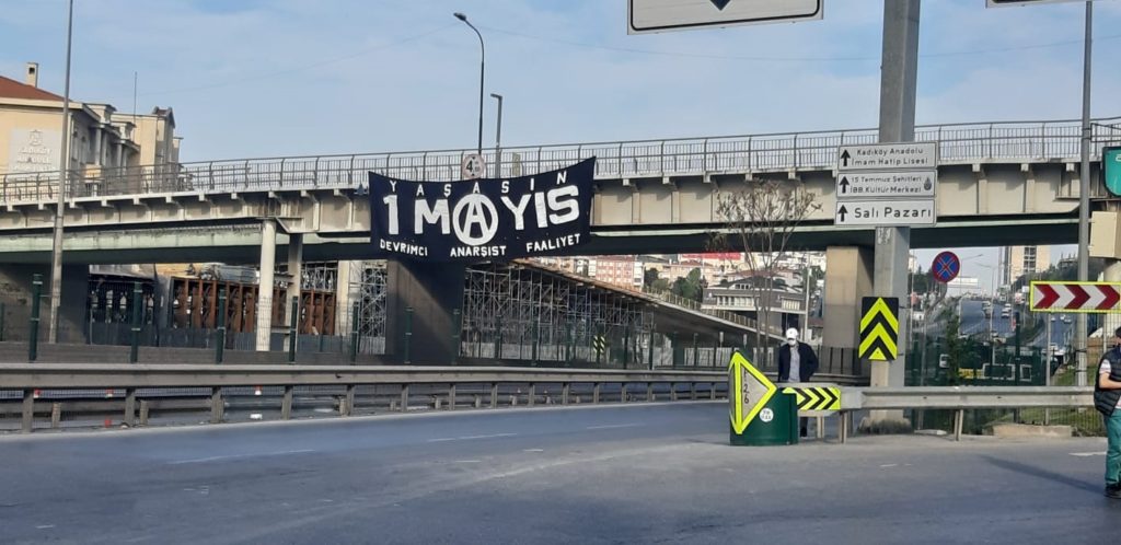 Devrimci Anarşist Faaliyet tarafından ise Üsküdar Ünalan Köprüsü’nden “Yaşasın 1 Mayıs” yazan pankart sallandırıldı.