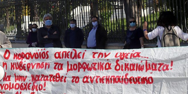 11 Mayıs’tan itibaren okulların kademeli olarak eğitime başlayacağı duyurulan Yunanistan’da öğretmenler, hazırlık için erken okula dönmeleri kararına karşılık çevirim içi öğrenim sınıflarında üç saatlik iş bırakma eylemi gerçekleştirdi.