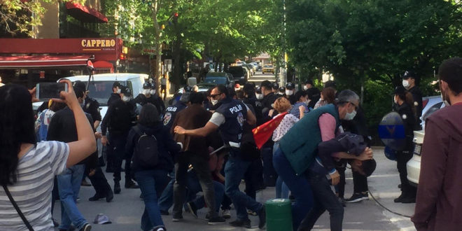 Ankara’da Madenci Anıtı önünde gerçekleştirilmek istenen eyleme polis saldırdı. Demokratik kitle örgütlerinin çağrısıyla “Unutmak yok! Susmak yok! Affetmek yok! Soma’nın hesabı sorulacak.” sloganıyla gerçekleştirilmek istenen eyleme yönelik polis saldırısında 10 kişi gözaltına alındı.