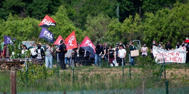 Öte yandan anarko sendikalist Özgür İşçileri Sendikası’nın (FAU) çağrısıyla yaklaşık 200 kişi Bornheim kasabasında mevsimlik tarım işçilerinin çalıştığı yerin önünde dayanışma eylemi yaptı.