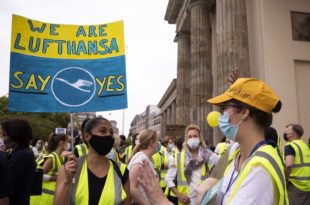 kategori: HaberlerAlman hava yolu şirketi Lufthansa Grubu’nun çalışanları, hükümetin kurtarma paketinin kabul veya reddine karar verileceği yarınki olağanüstü genel kurul toplantısı öncesi ülkenin çeşitli şehirlerinde eylem yaptı. Berlin’de tarihi Brandenburg Kapısı önünde toplanan yüzlerce Lufthansa çalışanı üzerinde “Lufthansa’ya evet -Biz Lufthansa’yız” ve “Siz bizi koruyun ki biz de sizi koruyabilelim” dövizler taşıdı. Eylemde yapılan konuşmalarda, şirket…
