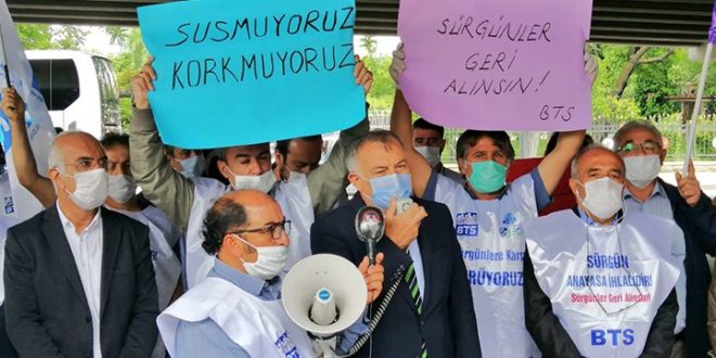Birleşik Taşımacılık Çalışanları Sendikası’nın (BTS), Türkiye Cumhuriyeti Devlet Demiryolları (TCDD) yönetiminin 13’ü BTS üyesi, 29 demiryolu emekçisinin kendi istekleri dışında başka illerde görevlendirerek “sürgün” etmesi üzerine İstanbul, İzmir, Adana ve Diyarbakır’dan başlattığı yürüyüş TCDD Genel Müdürlüğü önünde son buldu.
