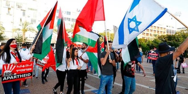 “İşgale hayır, ilhaka hayır, barışa ve demokrasiye evet” yazılı pankartların altında hem Filistin hem İsrail bayraklarıyla toplanan protestocular, İsrail’deki sol grupların organizasyonuyla bir araya geldi.