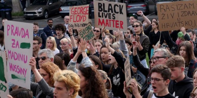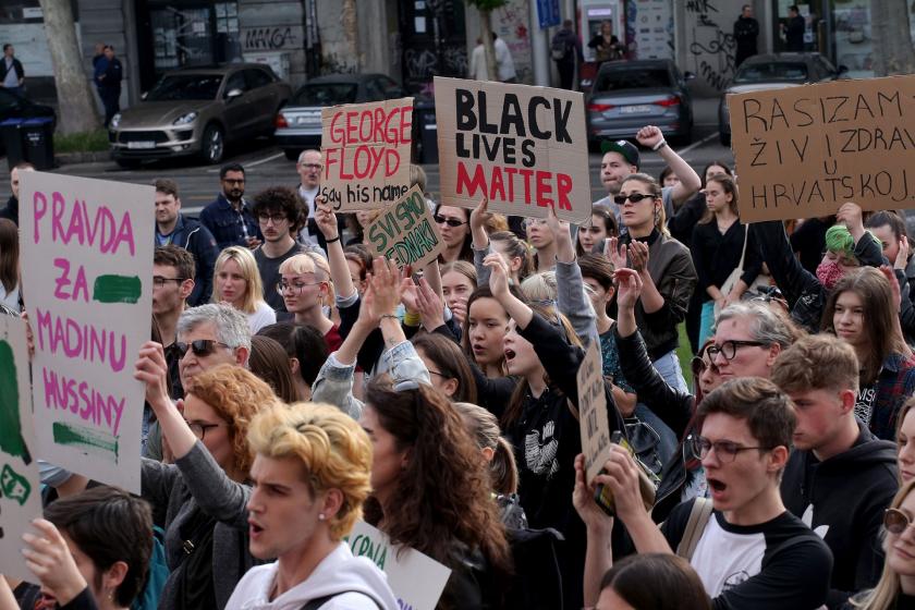 Zagreb Meydanı’nda toplanan eylemciler, ABD’de devam eden isyana destek verdi. Yüzlerce kişinin katıldığı gösteride, eylemciler, ırkçılık ve polis şiddetine maruz bırakılanlarla dayanışma göstermek için dizlerinin üstüne çöktü. Eylemde, “siyahlara şiddete son”, “polis şiddetine son”, “şiddeti desteklemeyin” ve “George Floyd boşuna ölmedi” dövizleri açıldı. Protestoda, Floyd’un son sözleri de okundu.