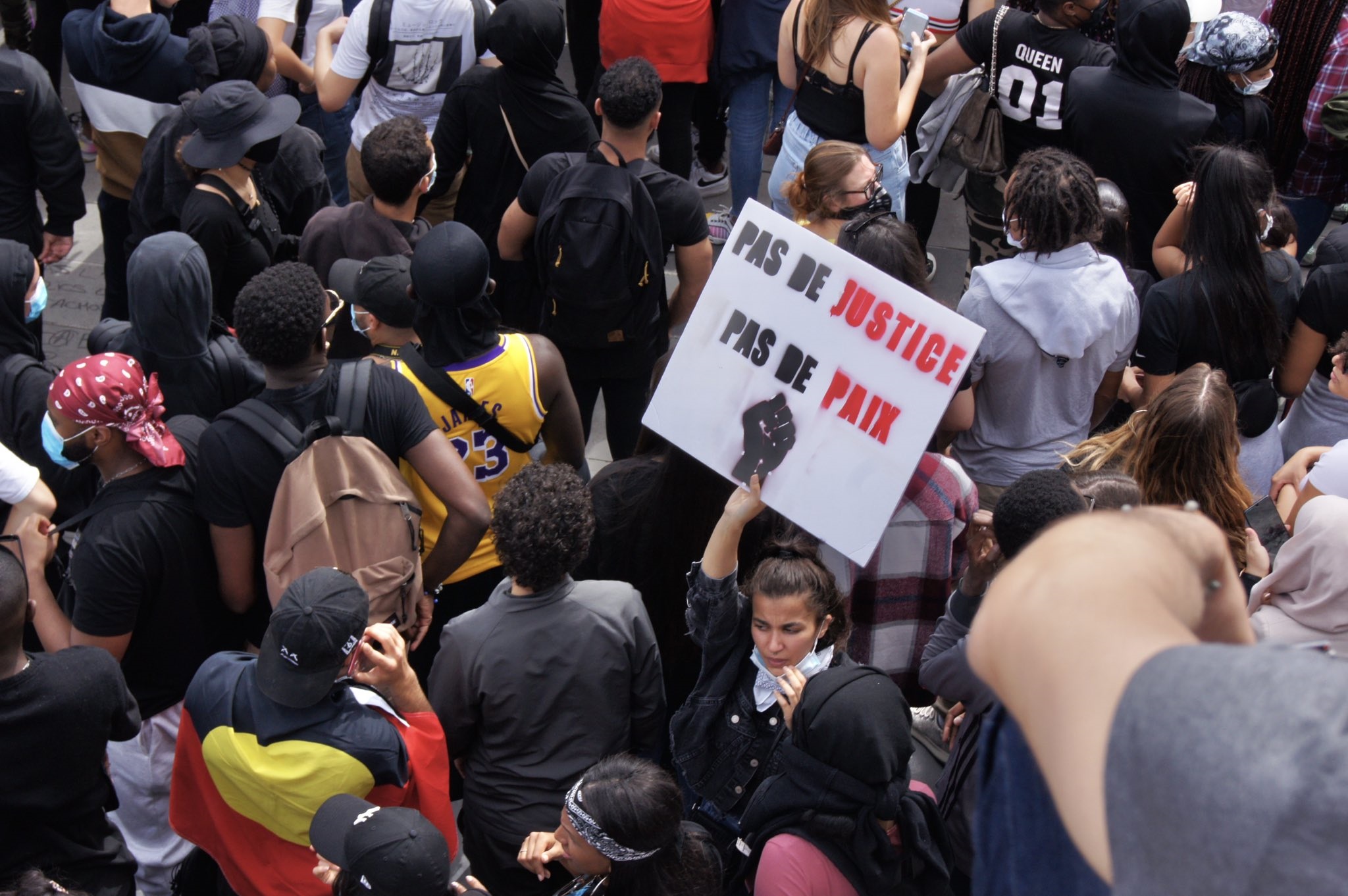 Eyleme yönelik yasaklama kararına rağmen Paris’teki Republique Meydanı’nda toplanan on binlerce kişi, ırkçılığı ve polis şiddetini protesto etti. Eylemciler “Adama için adalet”, “Katil polis”, “Polis şiddetine hayır”, “Adalet yoksa barış yok” sloganları attı. Eylemde Adama Traoré’nin ablası yaptığı konuşmada “Küçük kardeşimin maruz kaldığı şiddeti kınıyoruz. Kardeşim George Floyd gibi ‘nefes alamıyorum’ dedi.” ifadelerini kullandı.
