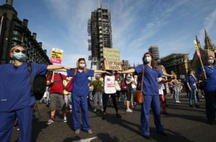 kategori: HaberlerSağlık çalışanları İngiltere’nin başkenti Londra’da ücret artışı ve çalışma koşullarının düzeltilmesi talebiyle eylem gerçekleştirdi. Yüzlerce sağlık çalışanı, Başbakan Boris Johnson’ın da yeni tip koronavirüse yakalandığı dönemde tedavi gördüğü St Thomas Hastanesi önünde toplandı. Eylemde Johnson’a yönelik olarak “Biz senin hayatta kalmanı sağladık şimdi sen bizim hayatta kalmamızı sağla” ve “Alkışlamak faturalarımı ödemeyecek.” dövizleri taşındı. Eylemde…
