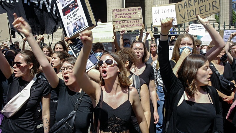 Fransa Cumhurbaşkanı Emmanuel Macron’la Başbakan Jean Castex’in belirlediği yeni kabinede iki kadına taciz ve tecavüzle suçlanan Gerald Darmanin’ın İçişleri Bakanlığı’na getirilmesi nedeniyle kadın örgütleri eylem yaptı.