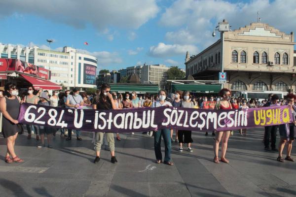 İstanbul’da Kadıköy Eminönü İskelesi önünde bir araya gelen kadınlar “6284’ü- İstanbul Sözleşmesini uygula” ve “İstanbul Sözleşmesi’ni uygulayın, çocuk istismarı affından vazgeçin” yazılı pankartlar açtı. Eylemde “İstismarın affı bahanesi olmaz”, “Çocuk istismarını aklama yargıla”, “Pandemiyi bahane etme istismarı önle”, “Her şartta ve her koşulda İstanbul Sözleşmesini uygula” dövizleri taşındı.