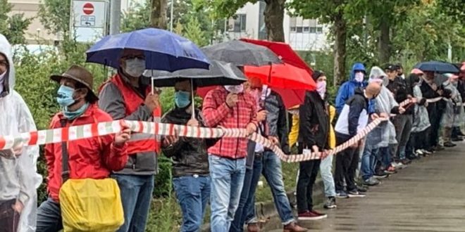Almanya’da 3 bin işçi Stuttgart’ta bulunan Bosch’un üretim ve yönetim merkezini zincir oluşturarak bloke etti. İşletmenin çevresini oluşturdukları insan zinciriyle kuşatan işçiler işten atma saldırılarına karşı seslerini yükselttiler. Yerel ve bölgesel medyanın görüntü alıp röportajlar yaptığı eylem Saat 11’den 12’ye kadar sürdü. Bosch’un Schwieberdingen işletmesinden işçiler de dayanışmanın bir işareti olarak insan zincirinde yer aldılar.