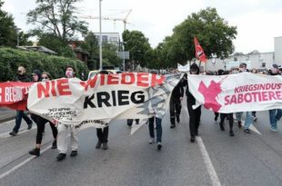 kategori: HaberlerAlmanya’nın önemli silah şirketlerinden biri olan Krauss-Maffei Wegmann’ın (KMW) yer aldığı Kassel kenti, savaş karşıtlarının iki önemli eylemine ev sahipliği yaptı. Krauss-Maffei Wegmann (KMW) şirketi önünde blokajla, kent merkezinde de yürüyüşle silah üretimi ve ihracatı protesto edildi. Almanya’nın tank benzeri ağır silahlar üreten silah fabrikalarından biri olan Rheinmetall’e karşı oluşturulan “Rheinmetall’i silahsızlandırma” itifakının gerçekleştirdiği eyleme…