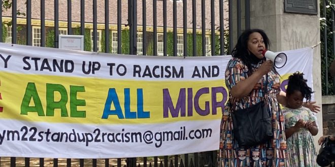 İngiltere’nin başkenti Londra’da düzenlenen eylemde 17. yüzyılda yaşayan köle taciri Robert Geffrye’nin heykelinin kaldırılması talep edildi.