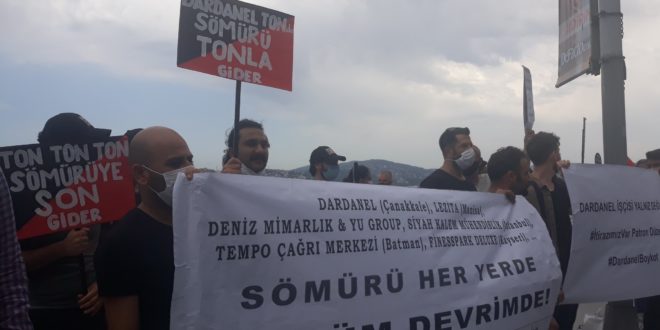 Dardanel Gıda’nın Çanakkale’de bulunan yaklaşık 1000 kişinin çalıştığı fabrikasında koronavirüs vakalarının çıkmasının ardından “kapalı devre” çalışma adı altında, uygulamaya konulan devlet destekli toplama kampı uygulaması İstanbul’da protesto edildi.