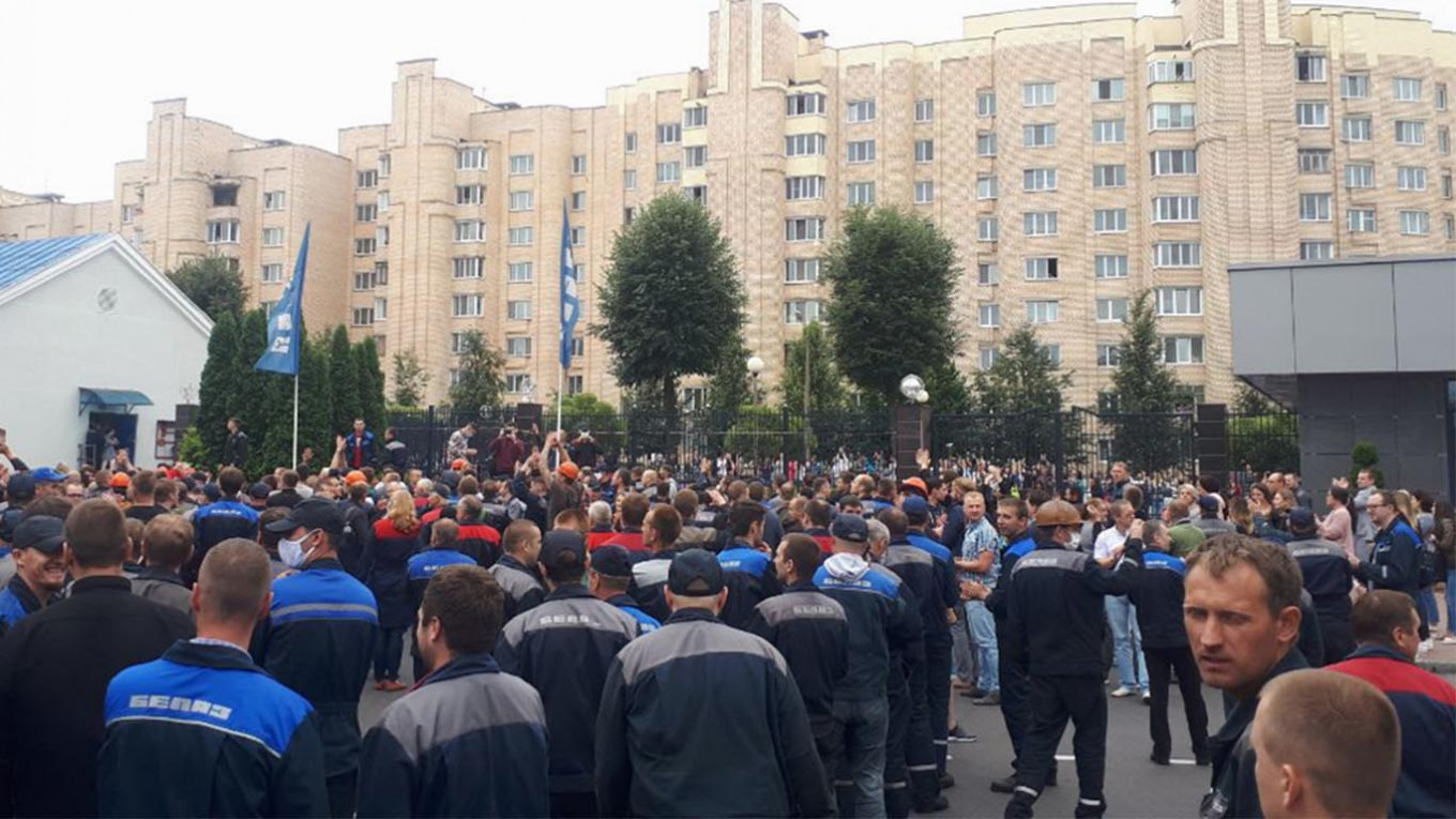 Minsk yakınlarındaki Zhodino kasabasında devlete ait Belarus Otomobil Fabrikası’nda (BelAZ) ve devlet tarafından işletilen Minsk Otomobil Fabrikası (MAZ) ve Minsk Traktör Fabrikası’nda (MTZ) işçiler üretimi durdurarak eylem yaptı. Grevlerin başka pek çok fabrikaya da yayıldığı ve en az 15 bin işçinin grevde olduğu belirtiliyor. Grevci işçiler seçimlerin yenilenmesini, eylemcilere şiddet uygulayan polislerin görevden alınmasını ve politik mahpusların serbest bırakılmalarını talep ediyorlar.