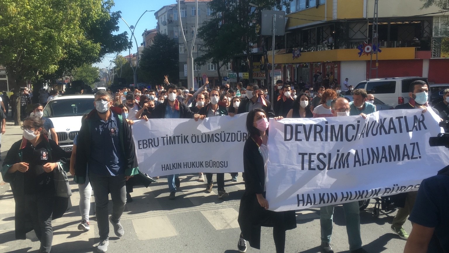 Adil yargılanma talebiyle cezaevinde başlattığı ve zorla kaldırıldığı hastanede sürdürdüğü ölüm orucunun 238. gününde hayatını kaybeden Avukat Ebru Timtik için bugün ilk anma töreni üyesi olduğu İstanbul Barosu önünde gerçekleştirildi. Anmada “Ebru Timtik ölümsüzdür”, “Katil devlet hesap verecek”, “Aytaç Ünsal onurumuzdur” sloganları atıldı.