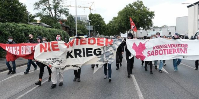 Krauss-Maffei Wegmann (KMW) şirketi önünde blokajla, kent merkezinde de yürüyüşle silah üretimi ve ihracatı protesto edildi. Almanya’nın tank benzeri ağır silahlar üreten silah fabrikalarından biri olan Rheinmetall’e karşı oluşturulan “Rheinmetall’i silahsızlandırma” itifakının gerçekleştirdiği eyleme korona koşullarına rağmen yüzlerce kişi katıldı.