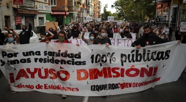 Madrid özerk yönetim hükümeti tarafından açıklanan ve yarından itibaren yürürlüğe girecek dolaşım kısıtlamalarını da içeren yeni önlemlere karşı 100’e yakın mahallede eylem düzenlendi. “Daha fazla kaynak, daha az ayrımcılık” pankartlarıyla yolları kesen eylemciler, alınan önlemlerin “geç ve yetersiz” olduğunu, dolaşımın sadece bazı bölgelerde kısıtlanarak “ayrımcılık” yapıldığını savundu.
