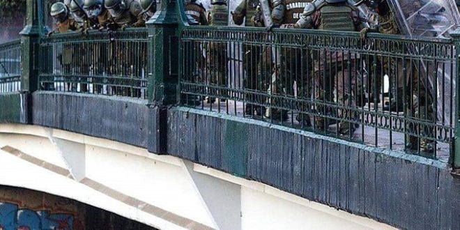 Cuma günü akşam saatlerinde Şili’nin başkenti Santiago’da gerçekleşen eylemler sırasında 16 yaşında bir genç polis tarafından köprüden nehre atıldı. Güvenlik kamerasınca kaydedilen görüntülerde, polisin genci köprünün korkuluklarına ittiği görülüyor. Gencin ağır biçimde yaralandığı öğrenilirken eylemlerde onlarca kişinin gözaltına alındığı ve çok sayıda yaralı olduğu belirtiliyor.