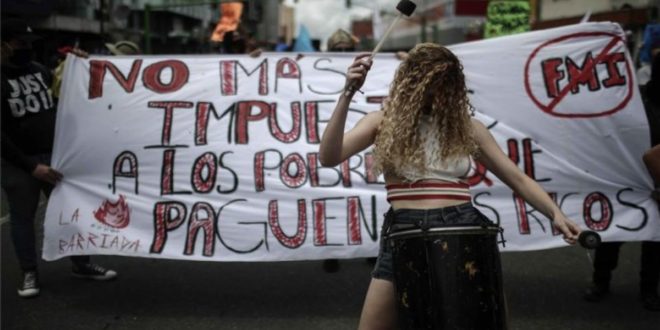 Salı günü de binlerce kamu çalışanı Kosta Rika’nın başkenti San Hose’de bir eylem gerçekleştirdi. Ulusal Kamu Çalışanları Derneği tarafından düzenlenen eylemde, yasama Meclisine yürüyen eylemciler “Zenginler ve servetleri ödesin, işçiler değil” pankartı taşıdı.