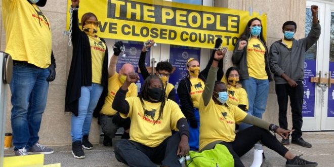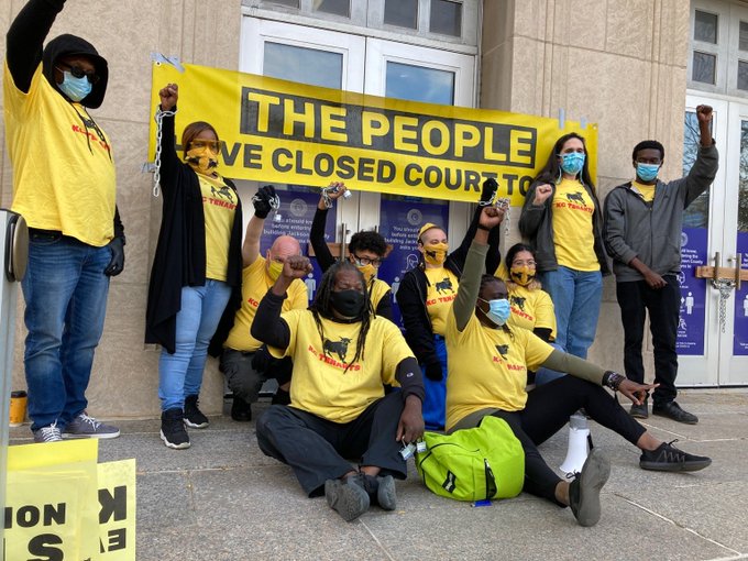 ABD’nin Missouri eyaletinde bulunan Kansas City’de KC Tenants (Kansas City Kiracıları) üyesi bir grup kiralarını ödemedikleri gerekçesiyle kiracıların evlerinden tahliye edilmesine karşı bu sabah Missouri şehir merkezindeki Jackson County Adliyesi’nin kapılarını zincirle kapattı.