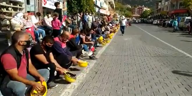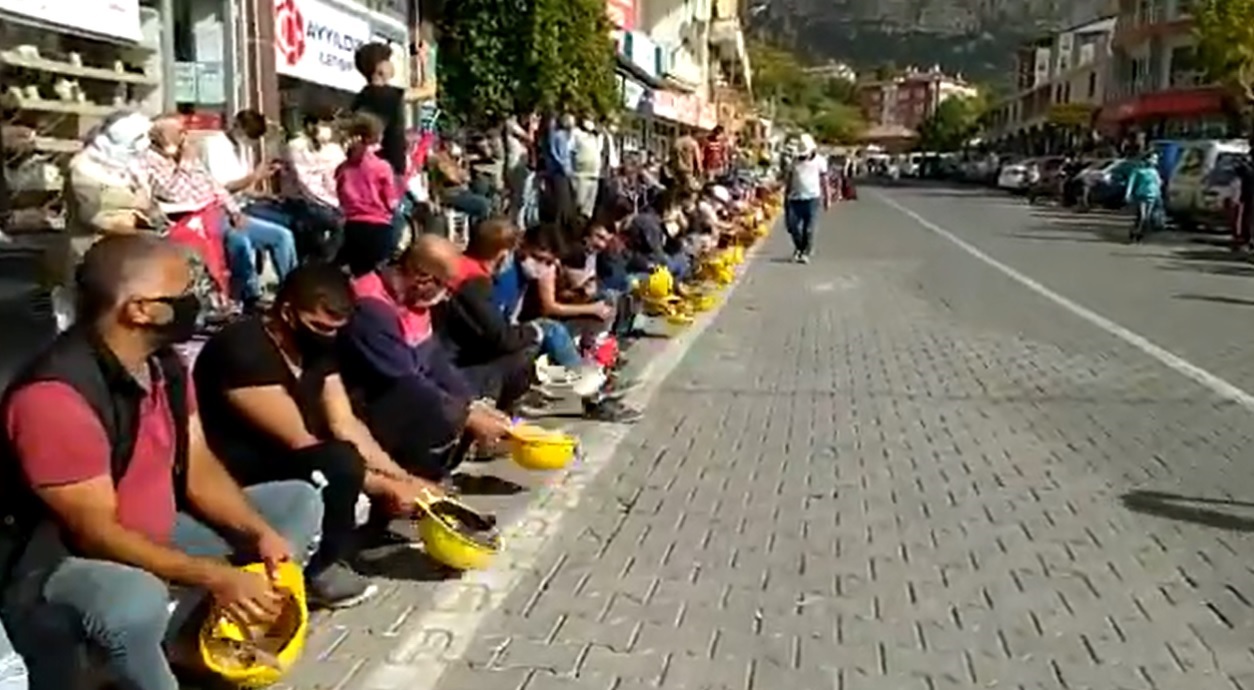 Ermenek Kaymakamı Hacı Osman Hökelekli’nin işçileri oyalamaya devam etmesi üzerine Ermenek ilçesine bağlı Güneyyurt Beldesi meydanında bir araya gelen işçiler ve aileleri oturma eylemine başladı. Baretlerini yere vuran maden işçileri “Direne direne kazanacağız”, “Güneyyurt madencine sahip çık”, “Ölmek var dönmek yok” “Yolu aç jandarma, geliyoruz Ankara” şeklinde slogan attı.