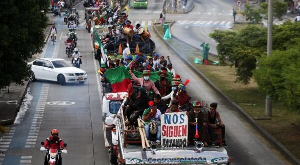 Kolombiya’da paramiliter çetelerin saldırıları ve derinleşen insan hakları ihlallerine çözüm bulmak için devlet başkanı Iván Duque ile Cali’de görüşme istekleri reddedilen yerliler ve köylülerden oluşan binlerce kişi başkent Bogota’ya ulaştı.