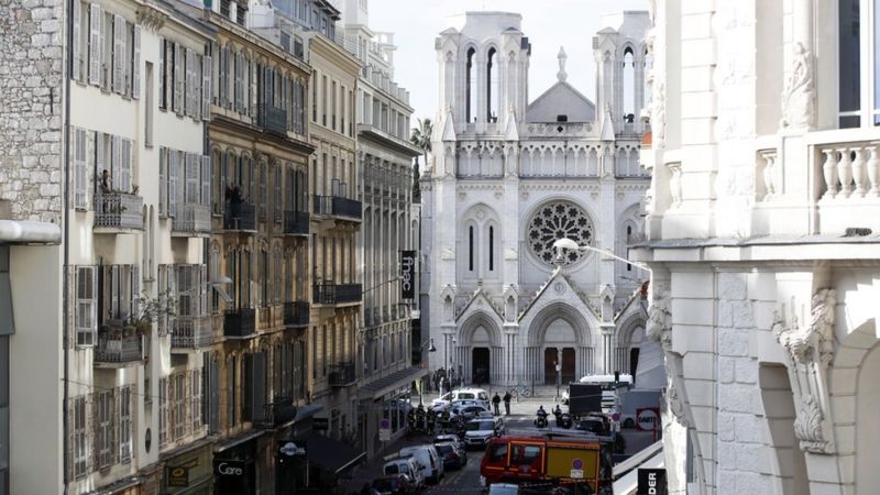 Kilisenin içinde bir kadının başının kesilerek öldürüldüğü belirtiliyor. Saldırıda üç kişinin öldüğünü açıklayan Fransız polisi kafa kesme iddialarını resmen teyit etmiş değil.