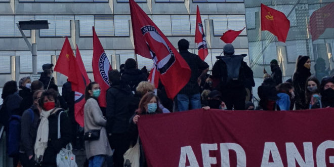 ETHA’nın haberine göre AfD, belediye seçimleri nedeniyle Stuttgart’ta miting düzenlemek istedi. Saatlerce süren eylemde AfD’lilerin buluşma noktası aralarında SKB, AGİF, ADHK ve ATİF’in de olduğu antifaşistler tarafından ablukaya alındı.