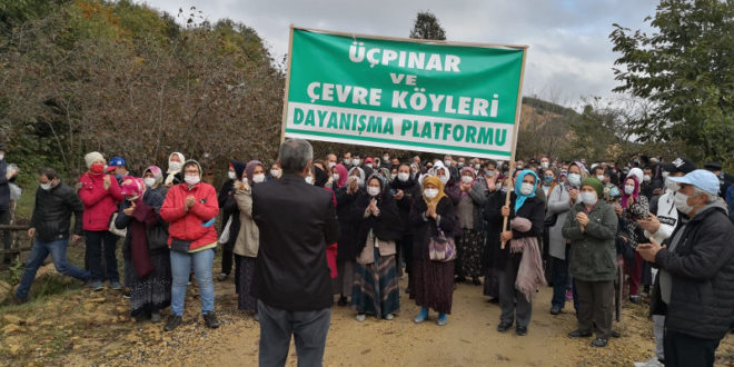 Dün (8 Kasım) Üçpınar ve Çevre Köyleri Dayanışma Platformu’nun çağrısı ile yüzlerce kişi sondaj çalışmalarının yapıldığı bölgede eylem gerçekleştirdi. Köylüler yaptıkları yürüyüşün ardından oturma eylemi gerçekleştirdi.