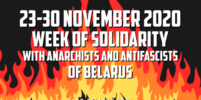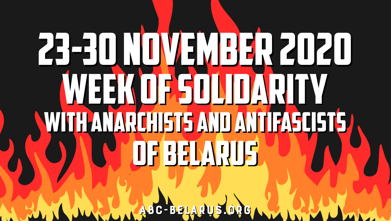 Belarus’ta Lukaşenko hükümetine karşı geçtiğimiz Ağustos ayında başlayan eylemlerde tutuklanan ve haklarında davalar açılan anarşist ve antifaşistlerle dayanışmak için bir haftalık uluslararası eylem haftası çağrısı yapıldı. Belaruslu anarşistler 23-30 Kasım arasında herkesi bulundukları yerde dayanışma eylemleri yapmaya çağırdı.