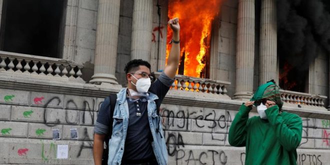 Binlerce kişi başkent Guatemala’daki Ulusal Kültür Sarayı’nın bulunduğu meydanda toplandı. Eylemciler bütçenin geri çekilmesini ve devlet başkanı Alejandro Giammattei’nin istifasını talep etti.