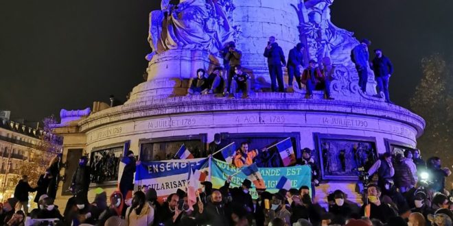 17 Kasım’da mültecilerin barındıklar, Paris’in banliyölerinden Saint-Denis’teki, Stade de France yakınlarında kamp, polis saldırısıyla tahliye edilmişti. Bunun üzerine Yüzlerce mülteci Republique Meydanı’na gelerek, dayanışma için gelen gönüllülerin desteğiyle kamp kurmuştu.