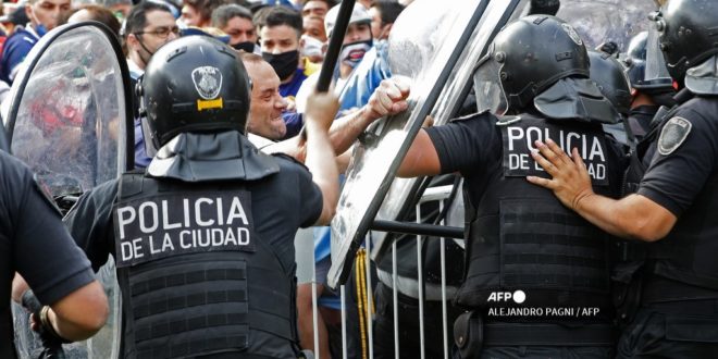 Maradona’nın cenazesinin hükümet sarayına getirildiği esnada tabutunu görmek isteyen taraftarlara polis biber gazı ve coplarla saldırdı. Saldırısı sonrasında çıkan çatışmada gözaltına alınanlar olduğu belirtiliyor.