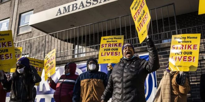 23 Kasım’da greve başlayan bakıcılar, temizlik işçileri ve yardımcı personel daha yüksek ücret ve daha fazla hijyen talep ediyor. Bazıları saatte 13 dolar düzeyinde ücret alan bakıcılar en az iki dolar daha fazla ücret talep ediyorlar.