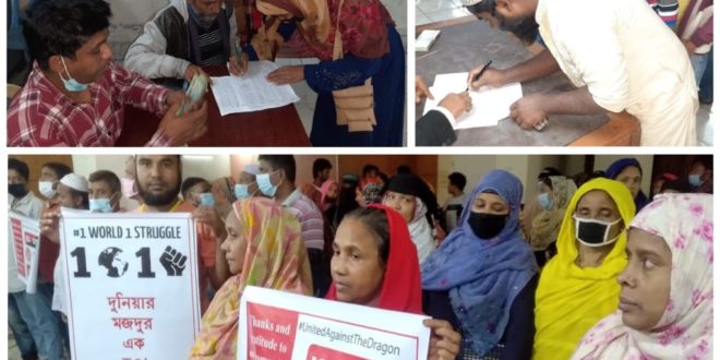 Yaklaşık 6000 kişinin çalıştığı iki hazır giyim fabrikası Covid-19 salgını bahanesiyle kapatılan kapatılmıştı. Gap, Zara, Primark, H&M gibi dünya çapında bir çok ünlü firma için kıyafet üretilen fabrikalar Londra’da ofisi bulunan Dragon Group adlı uluslararası bir holdingin parçası. Dragon Sweater işçileri ücret ve tazminat alacakları için aylardır çok sayıda eylem gerçekleştirirken, işçilerle dayanışmak için eşine az rastlanır bir uluslararası kampanya örgütlendi.