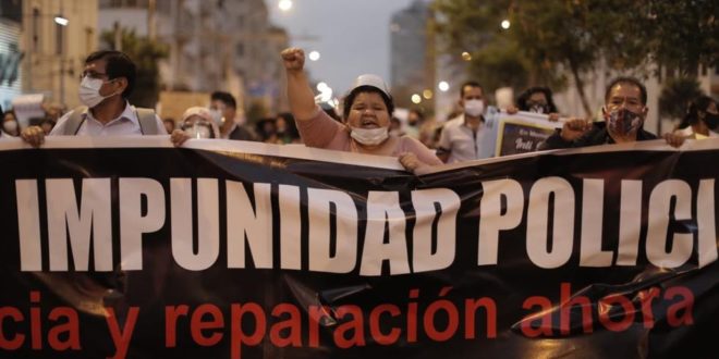 “Polis cezasızlığına karşı yürüyüş” sloganıyla düzenlenen eylemde polisin öldürdüğü protestocular için derhal soruşturma başlatılıması talep edildi. #14N Mağdurları ve Akrabaları Derneği’nin çağrısıyla düzenlenen eylemde 14 Kasım’da gerçekleşen Lima Şehir Merkezin’deki eyleme yönelik polis saldırısında yaşamını yitiren 24 yaşındaki Inti Sotelo Camargo ve 22 Jack Bryan Pintado’nun fotoğrafları da taşındı.