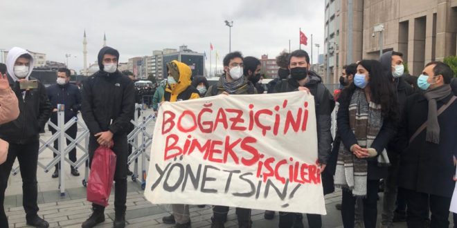 Eylemin devamında rektör atamalarına karşı direnişlerini sürdüren Boğaziçi Üniversitesi öğrenciler söz aldı. Öğrenciler direnen Bimeks işçilerinin yanında olduklarını vurguladı. Eylemde “İşçi gençlik el ele”, “Kurtuluş yok tek başına ya hep beraber ya hiçbirimiz!”, “Vedat Akgiray, üniversiteden defol!” sloganları atıldı.