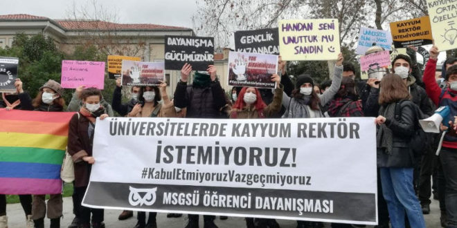 Boğaziçi Üniversitesi’nde öğretim görevlileri günlerdir olduğu gibi sırtlarını rektörlük binasına dönerek rektör atamalarını protesto etti. Üniversite kampüsünde toplanan öğrenciler ise Toplantı ve Gösteri Yürüyüşleri Kanunu’na muhalefet suçlamasıyla yargılanan BİMEKS işçilerine destek vermek için Çağlayan’daki İstanbul Adliyesi’ne gitti.