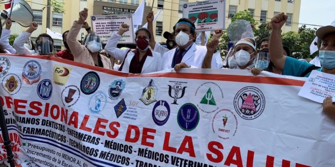 Peru’da sağlık emekçileri Çarşamba gününden itibaren süresiz genel greve başladı. Sağlık çalışanları, çalışma koşulları ve ücretlerinde iyileştirme yapılması, güvenlik önlemlerinin arttırılması, özel ikramiye hakkının verilmesinin yanı sıra sağlık bakanının istifasını da talep ediyorlar. Peru Tıp Federasyonu (FMP) tarafından ilan edilen ve Peru Sağlık ve Sosyal Hizmet Sendikası’nın da destek verdiği greve doktorlar, hemşireler, sosyal hizmet … Peru’da sağlık emekçileri süresiz genel greve başladı okumayı sürdür