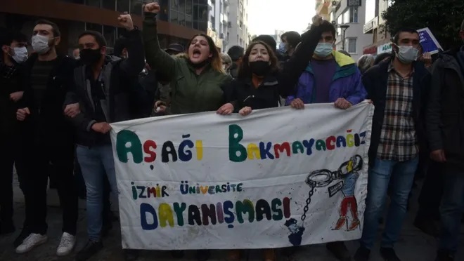 Rektör atamalarına karşı eylemlerini sürdüren Boğaziçi Üniveristesi öğrencilerine yönelik gözaltı, tutuklama ve hedef gösterme politikaları sonrasında iktidarın baskıcı politikalarına karşı direnişe dönüşen eylemler bugün de devam etti.