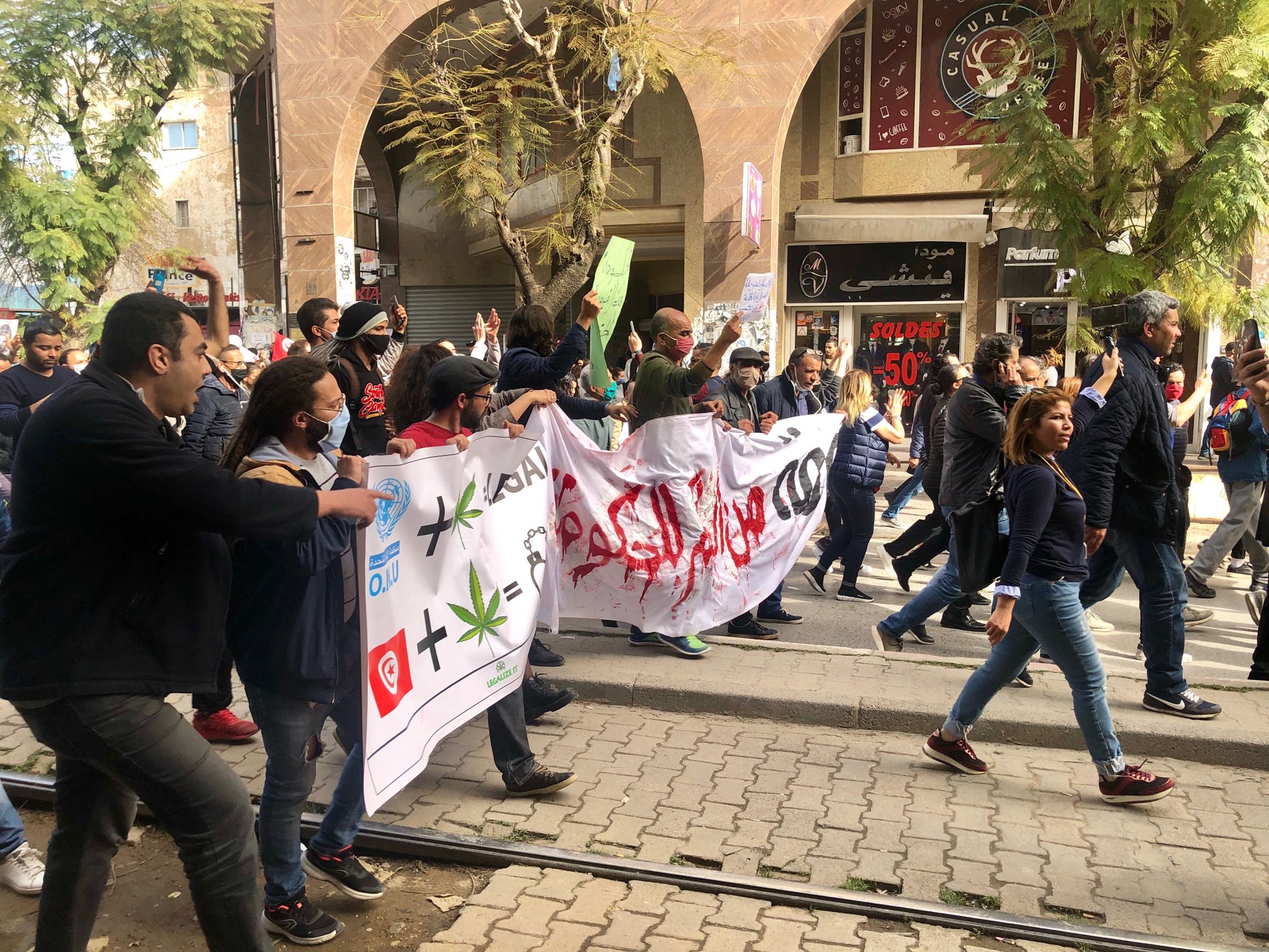 Başkent Tunus gerçekleşen eylem öncesinde polis geniş bir alanı abluka altına aldı. Polisin engelleme çabalarına rağmen binlerce kişi İnsan Hakları Meydanı’nda toplanarak Habib Bourguiba Caddesi’nde yürüyüş gerçekleştirdi. Beleyid’in fotoğraflarının yer aldığı posterleri taşıyan eylemciler “Halk rejimi devirmek istiyor” sloganı attı. Eyleme çok sayıda siyasi grubun yanı sıra Tunus’un en büyük sendikası olan Tunus Genel İşçi Sendikası (UGTT) da destek verdi.