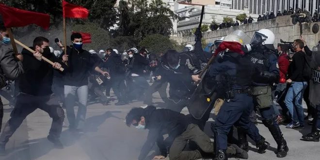 Selanik’te gerçekleştirilen eyleme de yüzlerce kişi katılırken, yürüyüşe yönelik polis saldırısı sonrasında polis ve eylemciler arasında çatışma yaşandı. Eylemciler polise taş ve molotof kokteylilerle karşılık verdi.