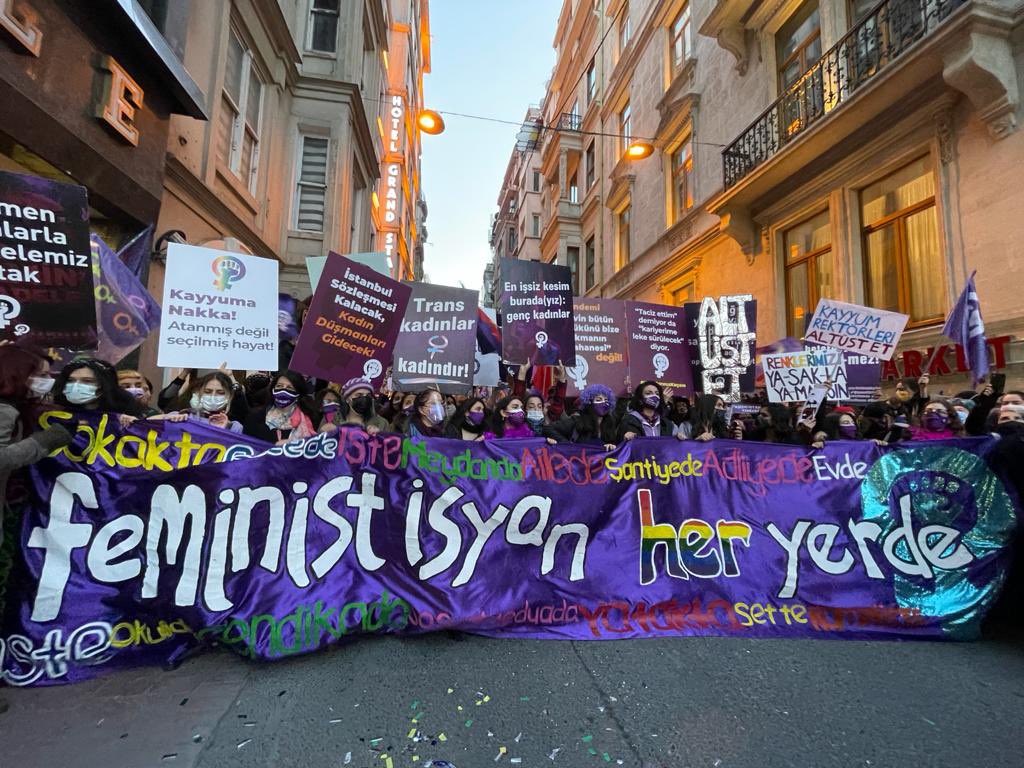 8 Mart’ta Taksim’de gerçekleştirilen 19. Feminist Gece Yürüyüşü’ne katılan kadınlara yönelik polis operasyonları gerçekleştiriliyor. Gözaltı gerekçesinin eylem esnasında atılan “Tayyip kaç kadınlar geliyor” ve “Zıpla zıpla, zıplamayan Tayyip’tir” sloganı olduğu, gözaltına alınan kadınlar “Cumhurbaşkanı’na hakaret”le suçlandığı belirtiliyor.