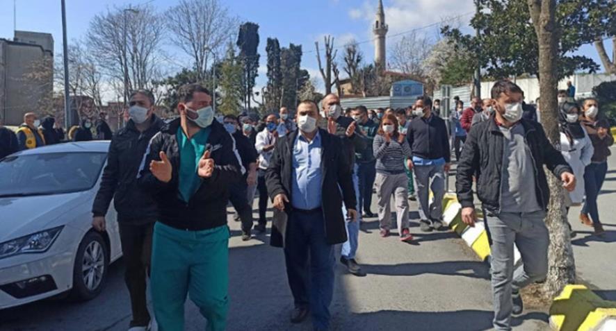 Cerrahpaşa Tıp Fakültesi’nde çalışan sağlık emekçileri ücretlerinin asgari ücret düzeyinde olması nedeniyle eylem gerçekleştirdi. İşçiler, eylemi engellemeye çalışan, üyesi oldukları Türkiye Sağlık İşçileri (Sağlık-İş) Sendikası’na da tepki gösterdi.