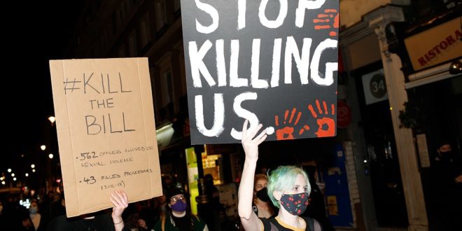 İngiltere’de bir erkek polis tarafından kaçırıldıktan sonra öldürülüp cansız bedeni ormanlık alana atılan Sarah Everard için adalet talebiyle eylemler büyüyerek devam ediyor.