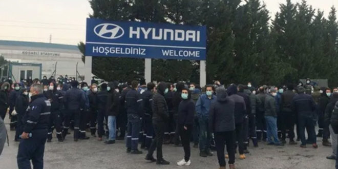 İzmit’te bulunan Hyundai Fabrikası’nda 2021 yılı zam oranının eski işçiler için %14, yeni işçiler için %10 olarak belirlenmesine karşı iş yerinde sendika dışı eylem başladı. Dün gece servise binmeyen yüzlerce işçi bu sabah da alkışlarla ve sloganlarla verilen zammı protesto etti.