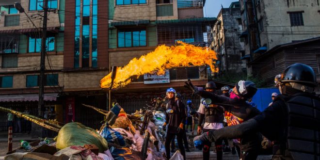 Haberde 1 Şubat’ta gerçekleşen askeri darbenin ardından barışçıl eylemcilere karşı şiddetin dozunu giderek arttıran askeri cuntaya karşı darbe karşıtlarının, mahalleleri askeri saldırılardan korumak için barikatlar kurdukları ve internet üzerinden nasıl duman bombası yapılacağını öğrendikleri belirtiliyor. Haberde darbe karşıtlarının ormanlarda, temel savaş teknikleri konusunda eğitim aldıkları ve askeri tesisleri sabote etmek için planlar yaptıkları ifade ediliyor.