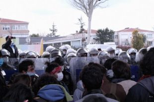kategori: HaberlerBoğaziçi Üniversitesi’nde devam eden, hala tutuklu olan 3 öğrencinin serbest bırakılması ve Melih Bulu’nun istifası talebiyle gerçekleştirilen boykot kapsamında, dün üniversite mezunlarının katılımıyla gerçekleştirilecek etkinlik öncesinde başlayan polis saldırıları gün boyu sürdü. Öğle saatlerinde Güney Kampüs’ten Kuzey Kampüs’e geçmeye çalışan 4 öğrenci LGBTİ+ bayrağı taşıdıkları gerekçesiyle polisler tarafından keyfi şekilde gözaltına alındı. Gözaltına alınan arkadaşların…